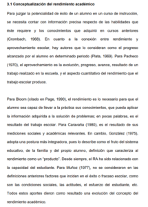 La intención de la investigadora era presentar diferentes posturas, según diversos autores, sobre cómo debía conceptualizarse el rendimiento académico. El uso de diversas citas en un mismo párrafo no afecta la calidad del trabajo realizado; al contrario, potencia su valor al presentar un contraste interesante sobre un concepto tan importante como el del rendimiento académico.